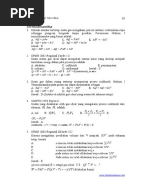 Termodinamika from imgv2-2-f.scribdassets.com Sebuah gas ideal menjalani proses isobarik sehingga suhu kelvinnya naik menjadi 6 kali semula. Sejumlah gas ideal mengalami proses isobarik. Gas tidak melakukan usaha e. Semua gas ideal mengalami proses isokhorik sehingga… a. Semua molekul kecepatannya sama b. Sejumlah gas ideal mengalami proses isokhorik sehingga. Semua gas ideal mengalami proses isokhorik sehingga… a. Tekanan gas menjadi tetap d.